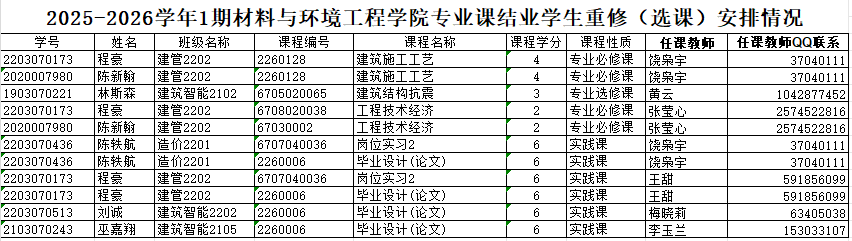 6、专业课重修,学生应先下载附件,查看重修(选课)安排表,学生在规定的时间内主动添加任课教师,沟通学习安排情况。