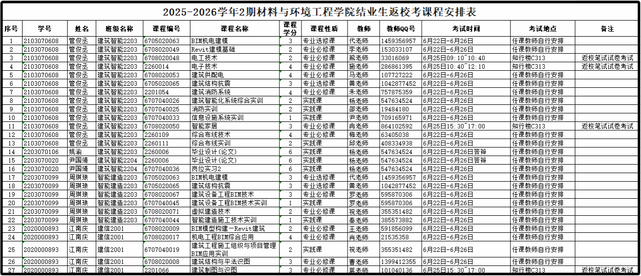结业生课程考核工作由开课学院安排进入教务系统,学生登录教务系统查询考试安排,关注开课学院通知,4月18日后如有不清楚请联系开课学院。