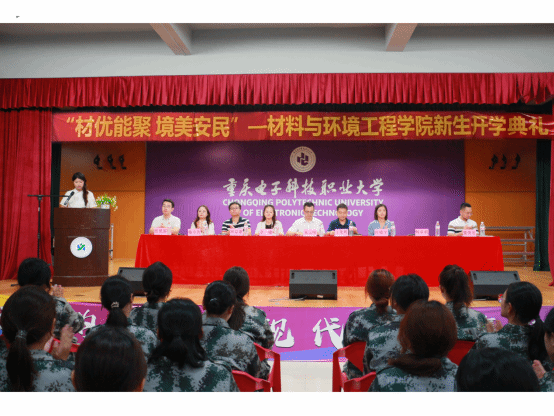 2025年9月30日,重庆电子科技职业学校材 料与环境工程学院2025级新生开学典礼在桐映园四楼隆重举行。学院党总支袁玉刚,副院长王荣辉,学院各科室负责人、教师代表、全体辅导员班主任等与朝气蓬勃的2025级“新材环人”齐聚一堂,共同见证这一庄严而热烈的时刻。