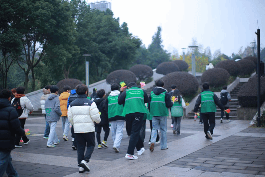 志愿者们在现场有序组织同学们集合、领取马甲,提供贴心指引与保障。接力过程中,师生配合默契,交替有序,用脚步丈量母校的发展,用汗水重温青春的激情。活动结束后,工作人员与同学们共同巡视现场,清理水瓶、纸团等垃圾,收拾好休息点的凳子、剩余物资,用实际行动守护校园的整洁与美好。